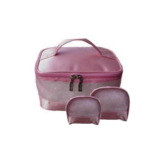 Customized pink satin nylon pvc mesh outdoor hand-carry storage three-piece zipper makeup storage bag set